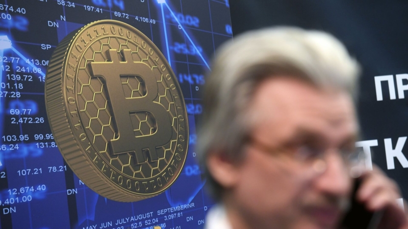 Логотип криптовалюты биткоин на экономическом блокчейн-форуме в Москве. Архивное фотоЧитать ria.ru в Дзен
